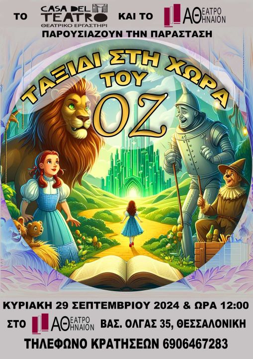 Το μαγικό ταξίδι για μικρούς και μεγάλους μετά την επιτυχημένη πρεμιέρα του στη μεγάλη σκηνή του «Κινηματοθέατρο Αθήναιον» συνεχίζει τις παραστάσεις του. Μια ιστορία βασισμένη στο διαχρονικό βιβλίο «Ο μάγος του Οζ» του Lyman Frank Baum, γεμάτη νοήματα, αξίες και συμβολισμούς.