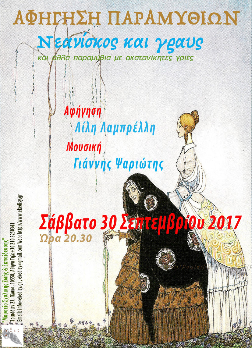 Παραμύθια με άφοβες, παράξενες και αμφίσημες γριές, από την προφορική λογοτεχνία της Ευρώπης και της κεντρικής και βόρειας Αφρικής. Η βραδιά θα κλείσει με μια τολμηρή ιστορία από την αρχαιοελληνική παράδοση που μας έρχεται από τον Αίσωπο, όμως δεν είναι για μικρά παιδιά.