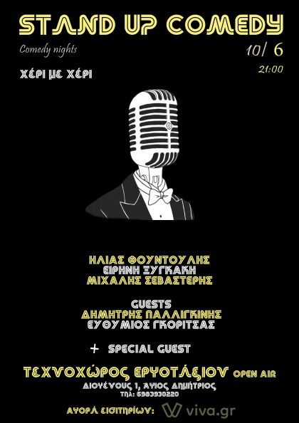 Σας έχει λείψει η κωμωδία; Και ειδικά η ζωντανή κωμωδία; Με ένα εξαιρετικό line up ο ένας κωμικός πασάρει το μικρόφωνο στον άλλο. Μια βραδιά με νέο υλικό και γέλιο. Επανερχόμαστε δυναμικά με φανταστικούς κωμικούς.
